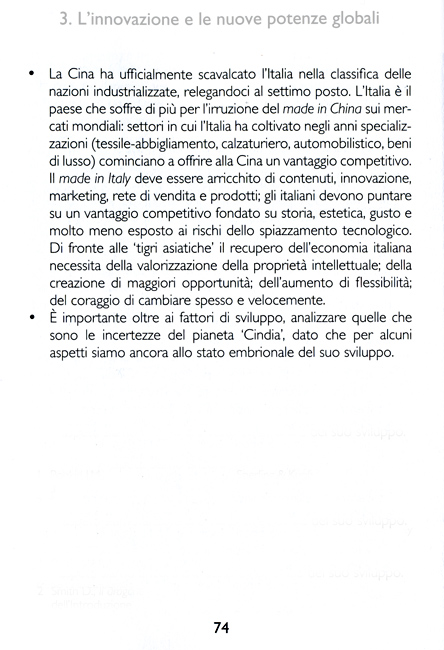 L’innovazione-globalizzazione non si risolve solo, però, nel mutamento della produzione manifatturiera; accanto alla crisi dei distretti monoproduttivi si ha anche l’opportunità di individuare, almeno per il nostro Paese, il vantaggio produttivo dovuto al made in Italy: ‘Il made in Italy delle produzioni complesse è costruito più che dal fare merce, dal creare, progettare e realizzare la merce.’