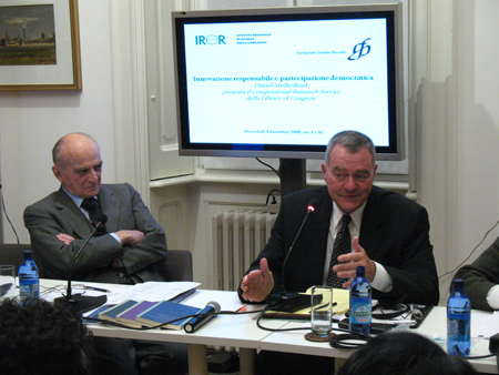 Introduced by Foundation President Piero Bassetti, and Roberto Ronza, Delegate of the President of the Region of Lombardy for International Relations, Daniel Mulhollan answered numerous questions from the public about his experience with Congress, whose library was founded in 1800 and expanded upon through a gift from Thomas Jefferson in order to support the US legislature. At the beginning of the twentieth century within the Library of Congress the Congressional Research Service was formed.
